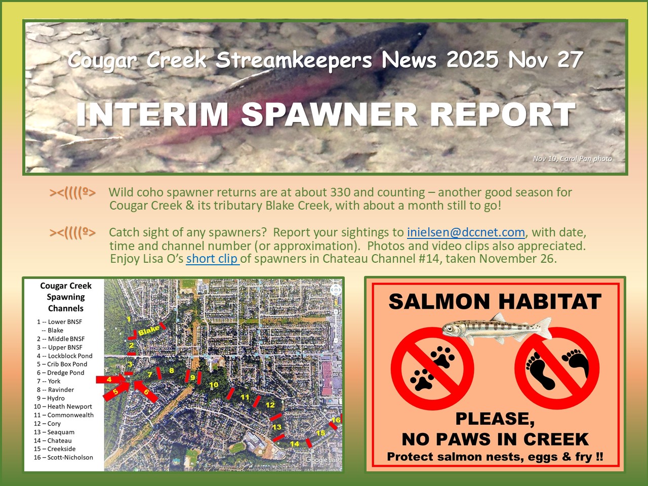 We welcome new volunteers who would like to help us with existing projects or start up new ones. Alternatively, join our “Streamkeeper” email list to receive notices of upcoming work parties and other events. Come when you can – even just an hour of your time now and then can make a difference!